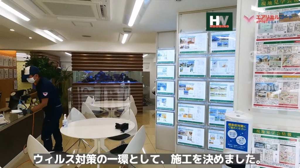 東日本ハウジング様には、日々、多くのお客様が住まい探しのご相談でご来店されます。昨今のウイルス対策の一環として、より安心してご来店いただける環境づくりを目的に、本施工をいたしました。
